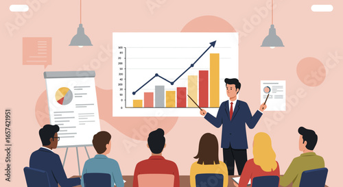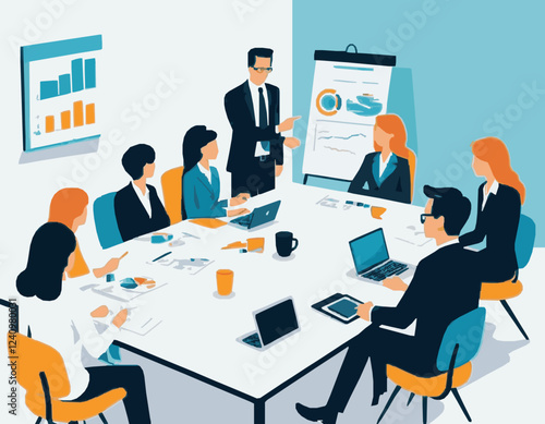 Arab people listening to lecture, flat vector isometric illustration. International business seminar, workshop or training.