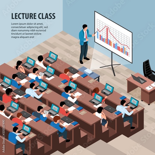 Arab people listening to lecture, flat vector isometric illustration. International business seminar, workshop or training.