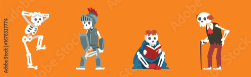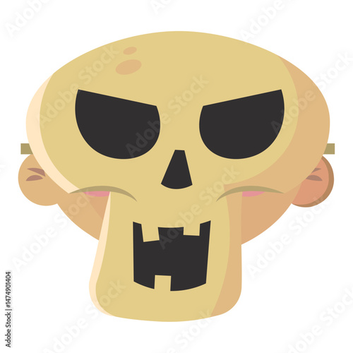 Micro male and female characters archaeologists cleaning huge human skull from soil, vector illustration. Ancient artifacts concept for web banner, website page etc.