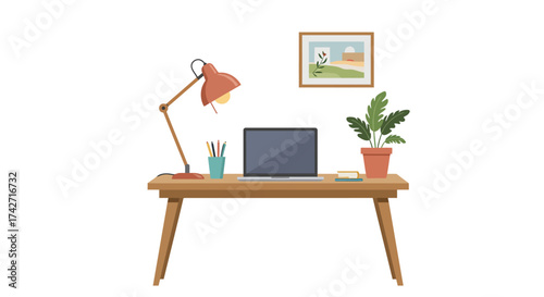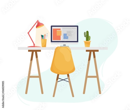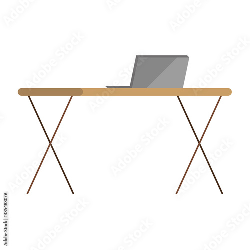 Architect desk with city new buildings model and laptop vector icon isolated on white background.