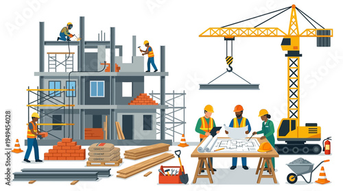 Architects and designer workplace vector illustration in flat style. Drawing tools and instruments isolated on white background. Drawing board.