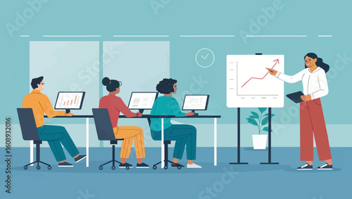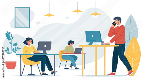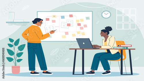 Professional architects, engineers working on architecture project of modern housing complex, flat vector illustration. Building industry, construction development.