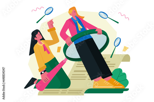 Micro male and female characters artists painting on huge sketching board using paints, vector illustration. Art classes, creative arts workshop, painting studio concept for web banner, website page.