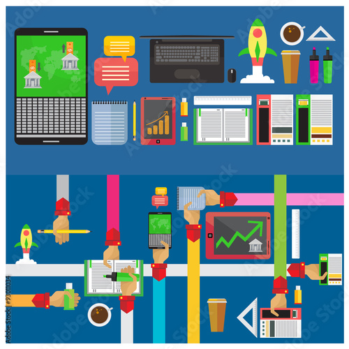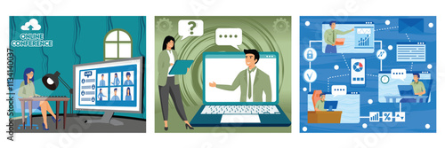 Artificial intelligence technology vector poster template set. AI engineers developing digital brain. Engineering artificial intelligence software, computer science, machine intelligence, automation.