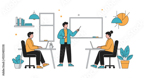 Road repair, maintenance and construction vector illustration. Male characters workers working with shovel, wheelbarrow, holding traffic cones. Asphalt paving process concept for banner, website page.