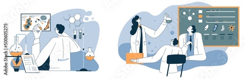 Astronauts spacewalkers next to Saturn planet, vector flat style design illustration. Space expedition, travel, walk in open space concept for web banner, website page etc.