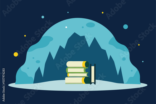 Astronomy science poster background with book, telescope education stuff, observatory for cosmos outer space studying over starry night sky planet, comet, meteor and star constellation