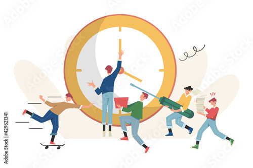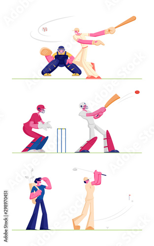 Athletes male characters jumping over horizontal bar, running and passing relay baton, vector illustration. Athletics high jump, relay race track and field sport events concept.