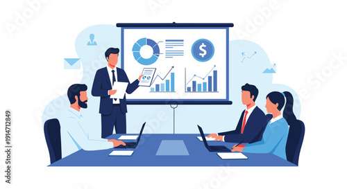 Auction scene with auctioneer opening bidding calling out starting price, bidders making bids, flat vector illustration. Auction and bidding concept.