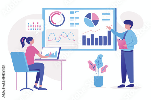 Auction scene with auctioneer calling out starting price, buyers making bids, flat vector isometric illustration. Auction and bidding concept.