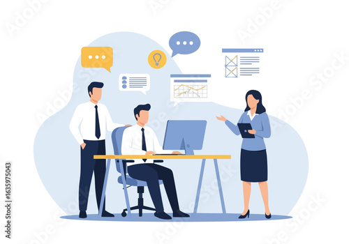 Auction scene with auctioneer opening bidding calling out starting price, bidders making bids, flat vector illustration. Auction and bidding concept.
