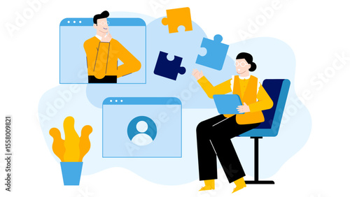 Ceramic and sculpture art auction, flat vector illustration. Male characters auctioneer holding gavel and bidder offering prices with bid puddle in raised hand. Auction business, market trade.