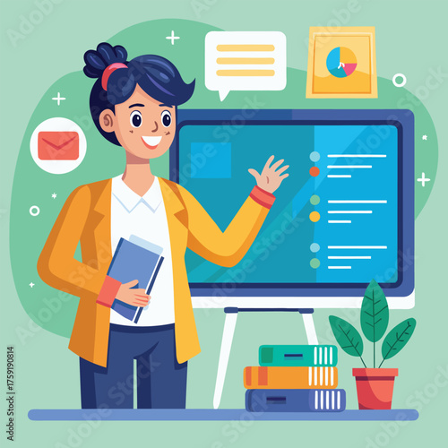 Female characters auctioneer selling vintage vase from computer and buyer making bids, flat vector illustration. Online auction. Internet bidding.