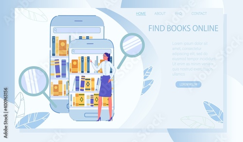 Audio media and books vector website template, web page and landing page design for website and mobile site development. People in headphones listening to audiobooks from mobile device.