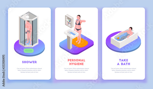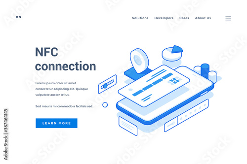 Audiobooks online landing page website template. Vector isometric pile of books with headphones on smartphone screen. Books online concept.