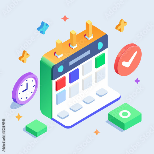 Automated mobile app testing, flat vector isometric illustration. Debugging, quality assurance, mobile test automation.