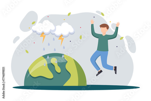 Huge sweet, succulent half fig fruit and micro male and female characters with orange and apple, vector illustration. Autumn seasonal healthy food, harvest festival concept for web banner website page