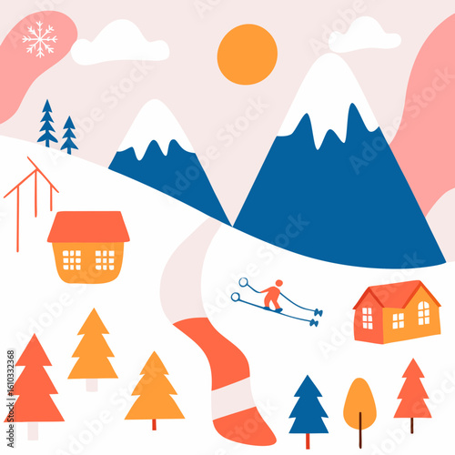 Avalanche vector. Snow slide down from mountain icon. Natural snowslide disaster landscape illustration isolated on white background