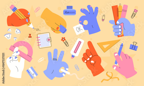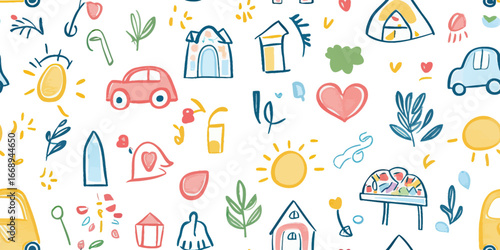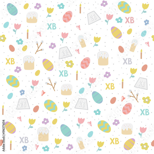 Vector seamless pattern with cute bunnies, baby toys, newborn girl booties. Baby shower background, wallpaper, fabric, wrapping paper.