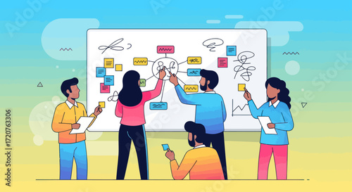 Bachelor party concept. Happy male friends and groom drinking alcoholic beverages, making merry and having good time at home together before marriage day vector illustration
