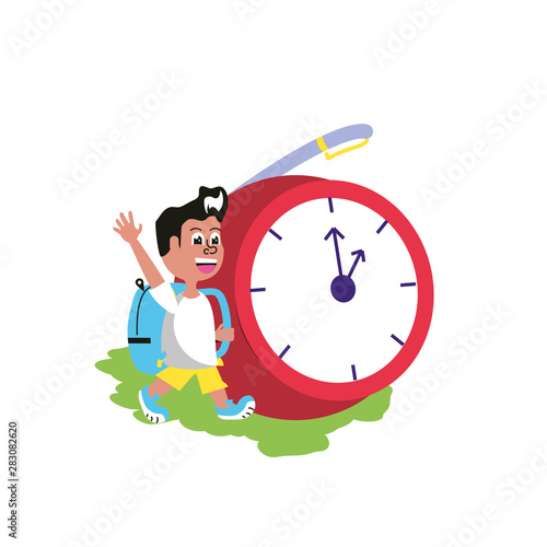 Back to school paper cut vector design. Alarm clock, graduation academic hat, study pencil items and driving school bus illustration. Time for education and learning concept