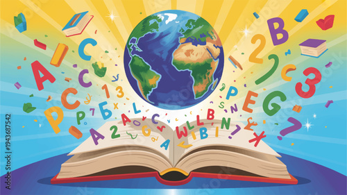 Back to school poster in paper cut style. Study stationary, learning supply and autumn leaves in circle with round empty blank copy space. Knowledge day vector illustration