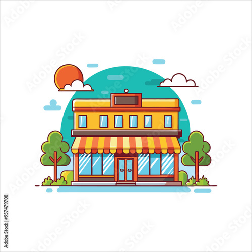 Back to school paper cut vector illustration. School building and bus over textbook pages. Welcome and invitation poster craft art style advertising design. Start of education process concept