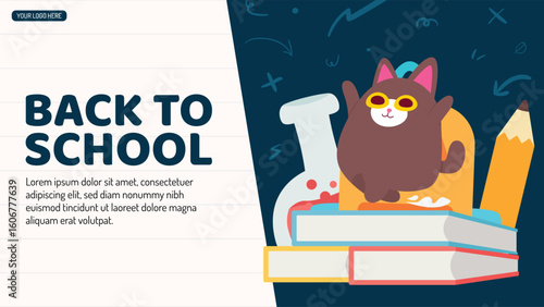 Back to school sale promotion vector illustration. Sale discount up to 50 percent off advertising. Half price on education items. School stationery with happy smile childish design element