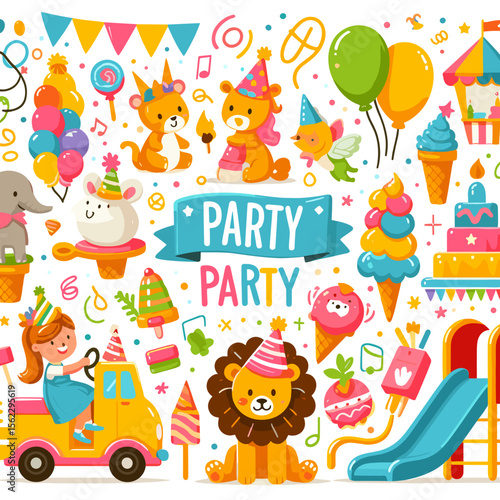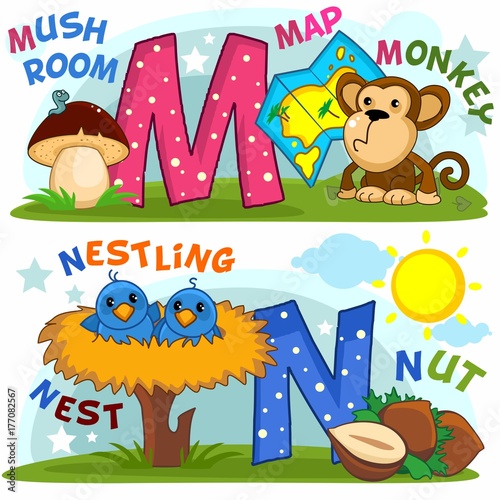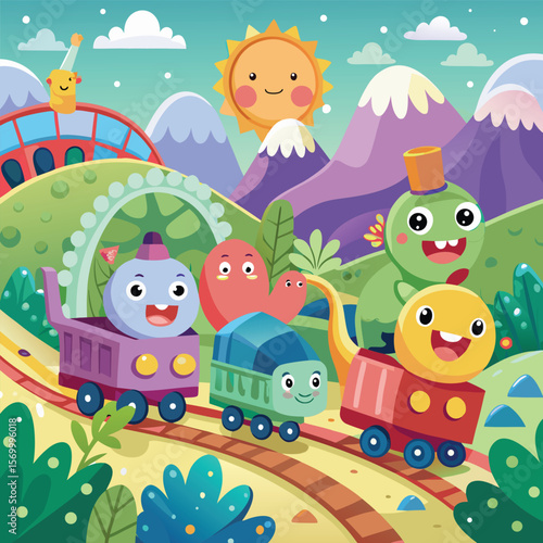 Back to school vector illustration with education items mascot. Happy smiling scissors, paints, paintbrush, ruler, alarm-clock, textbook, schoolbag, pen and pencil character