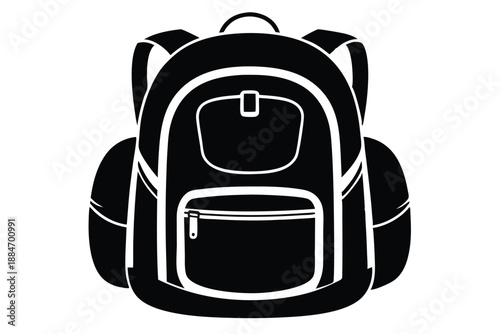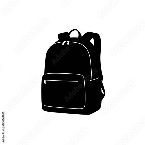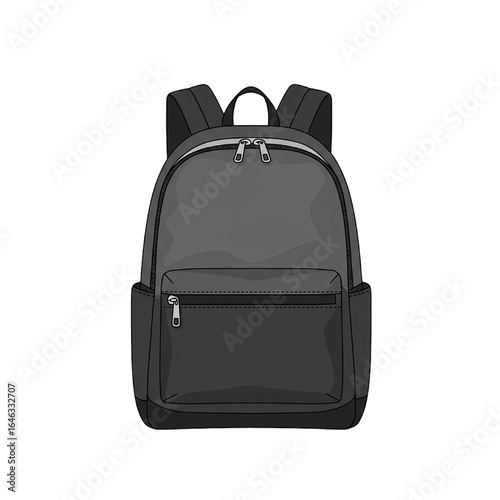 Backpack mockup set, vector isolated illustration. Realistic black school bag, rucksack with zipper, handle, straps.