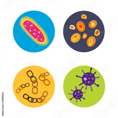 Bacteria, microorganism and virus cells icons set. Vector Illustration in flat style.