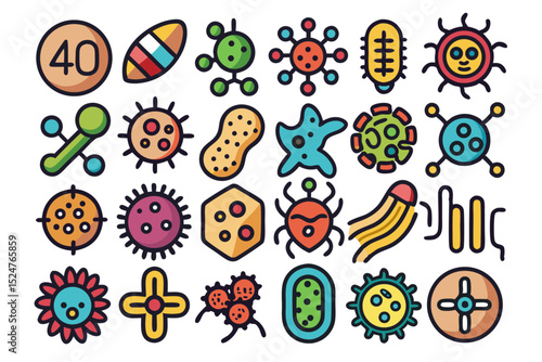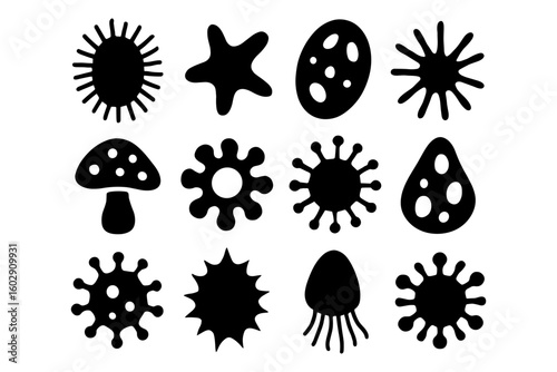Bacteria, microorganism and virus cells isolated on white background. Vector Illustration.