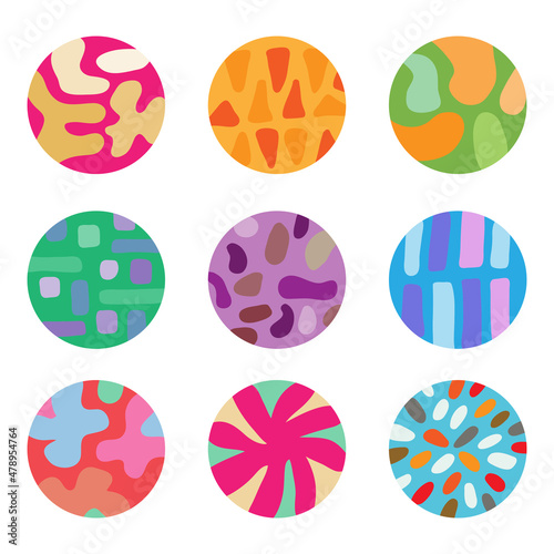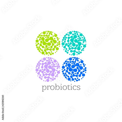 Bacterial flora in circle set, vector isolated illustration. Lactobacillus, propionibacterium, streptococcus, enterococcus, lactobacillus bulgaricus, bifidobacterium normal bacterial flora of humans.