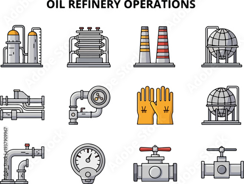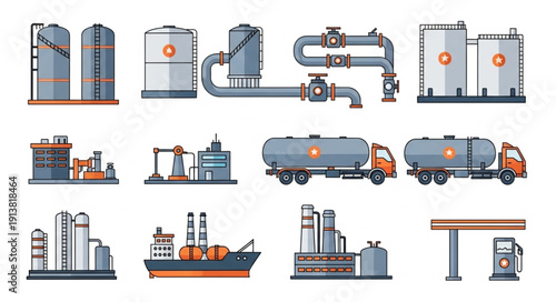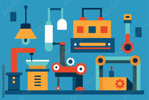 Bakery factory concept vector flat illustration. Bread making process flowchart used in industrial bakery. Three steps of bread manufacturing from flour grinding to baked fresh bread loaves.
