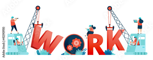 Bakery typography banner template, vector flat illustration. Baker, pastry cook male and female characters in chef uniform cooking decorating cakes, desserts. Confectionery, cake shop, bakery services