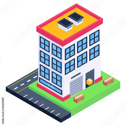 Bank building exterior vector icon. Financial department, international finance institution. Isometric 3d architecture isolated on white background