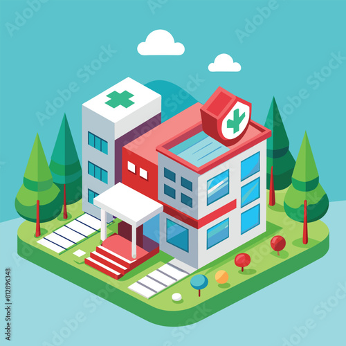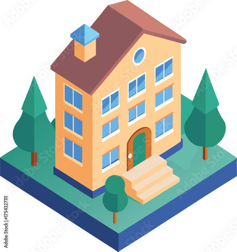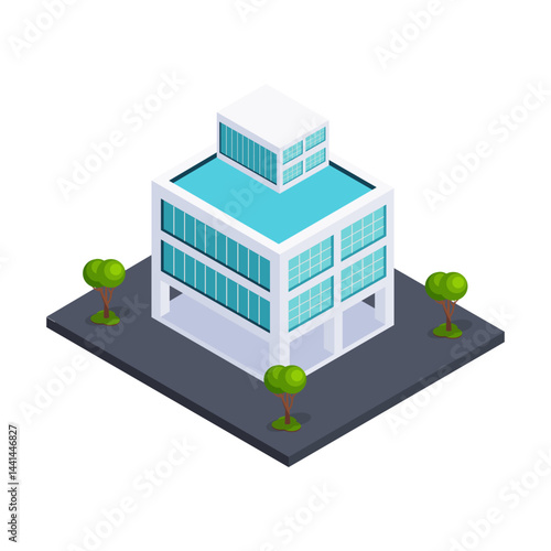 Bank building exterior vector. Financial institution office icon. 3d isometric design isolated on white background