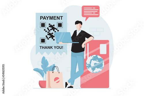 Vector illustration of bank teller female and customers males standing next to cashbox. Bank people concept flat style design elements, icons isolated on white background.