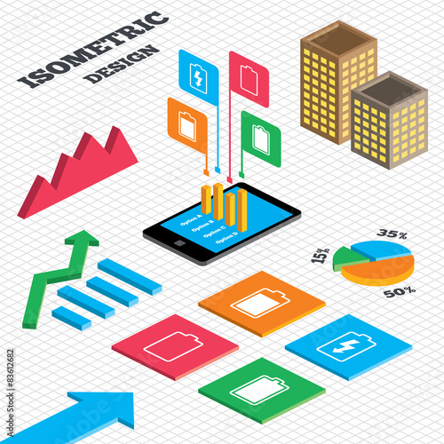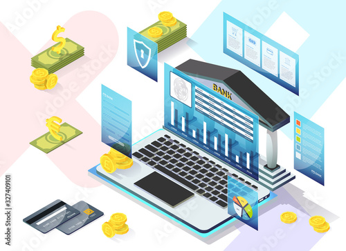 Bank rates and services vector illustration. Finance growth, budget and percent of profit from investment concept. Banking financial system, deposit income calculation 3d isometric design