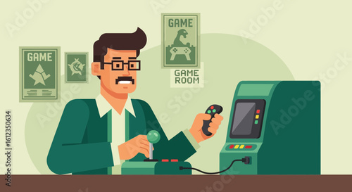 Vector illustration of armed security guard standing next to ATM. Bank security officer concept design element in flat style