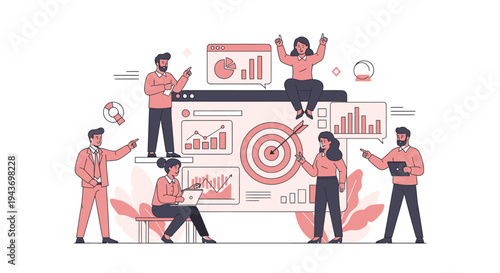 Micro male and female characters bank managers with clients, word bank in huge capital letters, vector illustration. Banking consultation, banking business concept for web banner, website page etc.