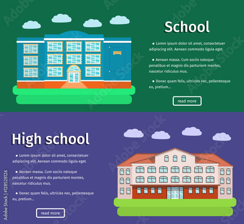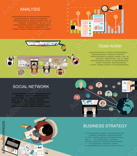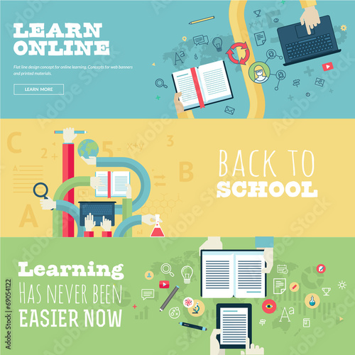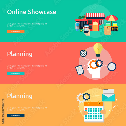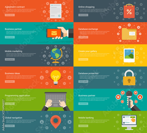 Vector set of horizontal banners with Bank, Security and Online payment line art flat style design elements, web templates.