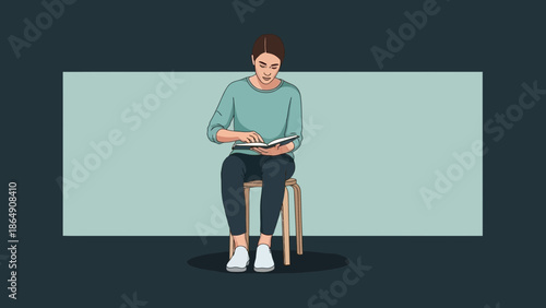 Banking concept vector illustration. Waiting hall, customer reading a book, flat style design.