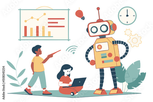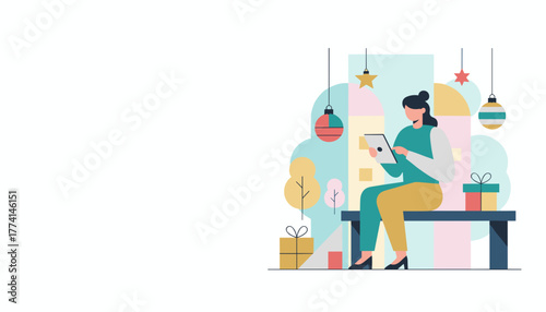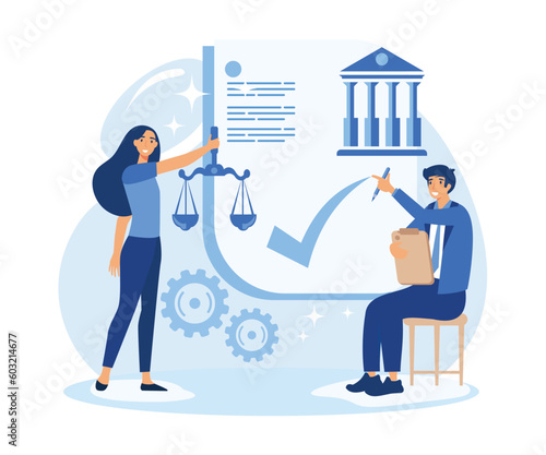 Bank building, man with megaphone attracting financial resources, happy woman balancing on one leg on dollar coin, vector flat illustration. Deposits promotion, banking business, bank services.