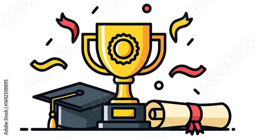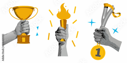 Barber competition logo, emblem set with gold trophy award, hairdresser tools, vector illustration isolated on white background. Barber battle show festival labels.
