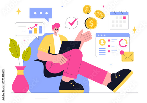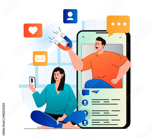 Barber or hairdresser ranking concept. Client giving positive feedback, likes and typing message with nice reviews. Mobile phone screen with application in human hand vector illustration