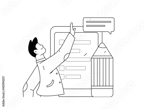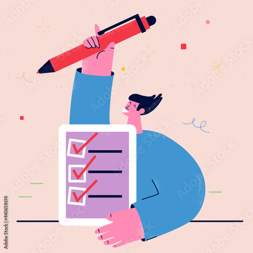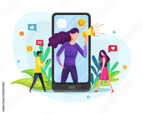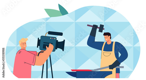 Vector illustration of tiny characters with big barber supplies for beard grooming hair shaving machine, aftershave, shaving brush with foam, scissors. Barbershop concept for web banner etc.