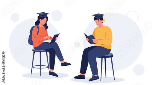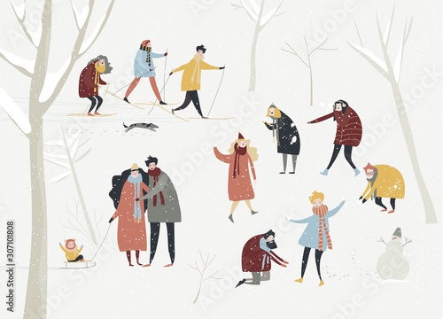 Vector illustration of tiny characters barbers trimming big mustache and beard using hair shaving machine, scissors and comb. Barbershop concept for web banner, website page.