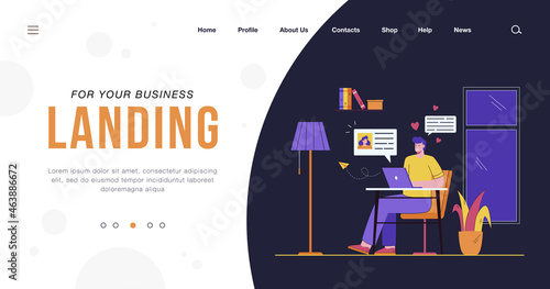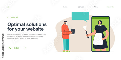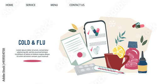 Barbershop landing page template. Vector flat style design concept for barber website and mobile site development. Comb, aftershave, straight razor, shaving brush, hair clipper, scissors, shampoo.