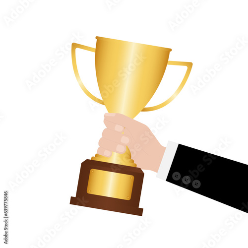 Realistic gold champion cup, baseball mitt, helmet, ball and bat on white round winner podium, vector illustration. Baseball sport game championship trophy, award.